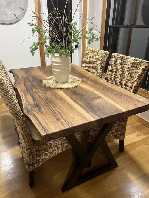 Walnut Dining Table for your living room or kitchen. Custom made walnut wood dining table with dark brown patterns. For this table, we combine two or three part of three together. Unique, special design with soft edges and handmade production just for you, your home and your kitchen.