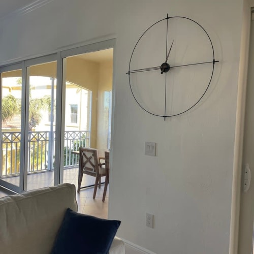 Product setup: The clock will be shipped disassembled with an English instruction manual and video available for setup (a QR code is provided to link to the instructional video). All necessary equipment for setup will be included in the box.
