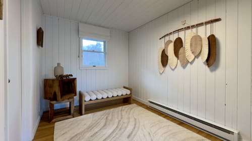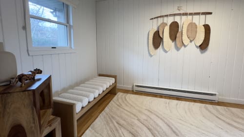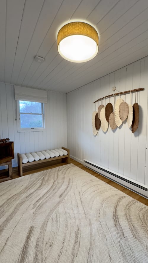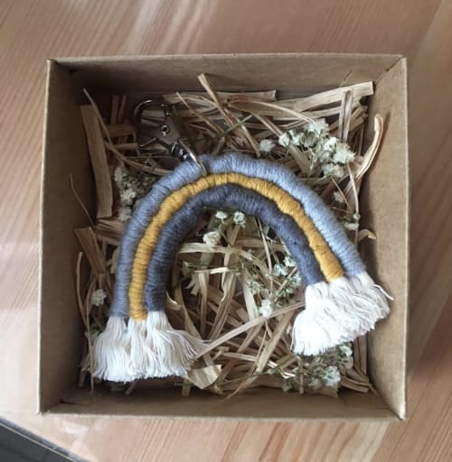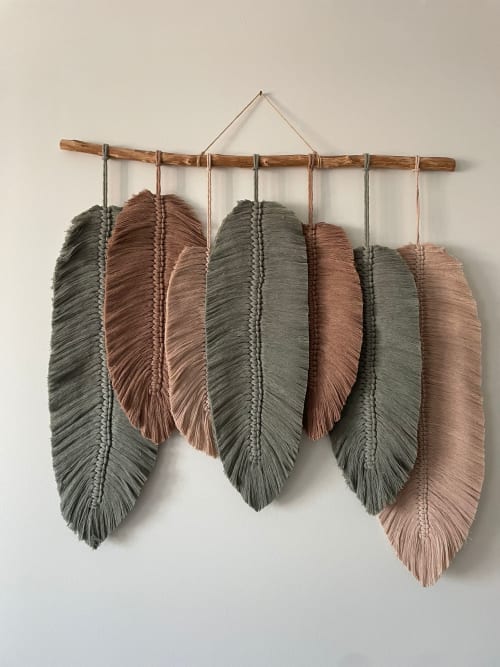 This custom creation handmade macrame item is crafted with 5 mm ecru colored cotton cord on a 30 cm metal hoop.