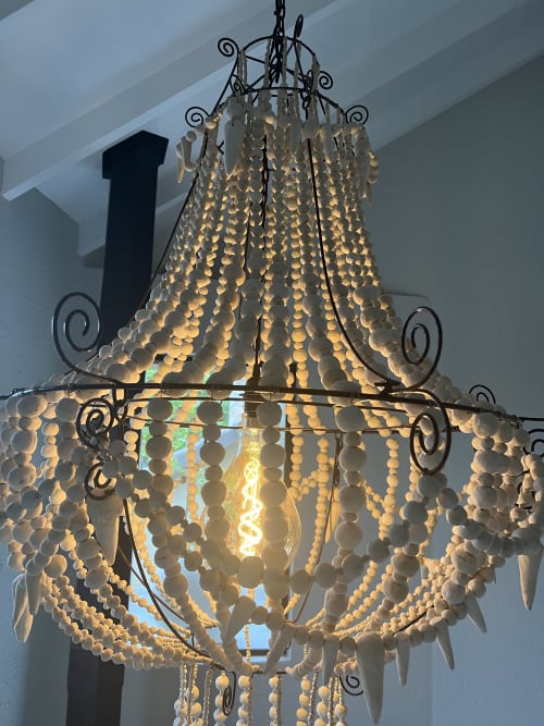 This chandelier is the father of all clay bead and bead chandeliers. it was exhibited at MoMA, New York, with customers like Ralph Lauren, Sir Richard Branson, Val Kilmer yes Batman!!