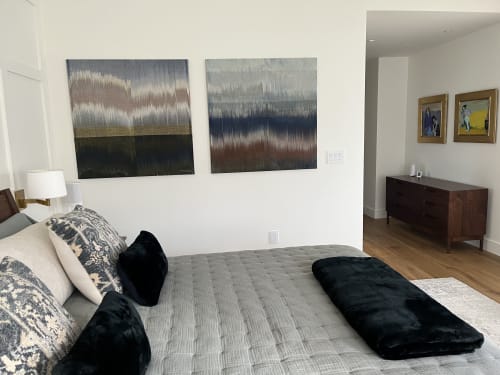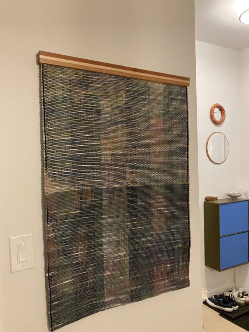 Jessie Bloom creates one-of-a-kind textile art pieces that blend contemporary craft with modern design. Each piece is handwoven on a vintage floor loom and made with various natural and hand painted yarns to create the characteristic blend of texture and flowing color.