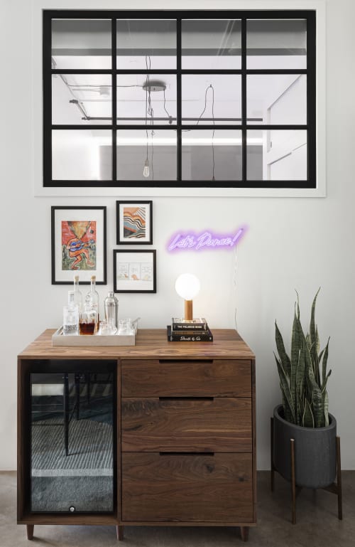 Pictured in hand-selected Black Walnut, this cabinet measures standard at 62”L x 18”D x 28”T. 24” of the total height being cabinet height, 4” being height of the base.