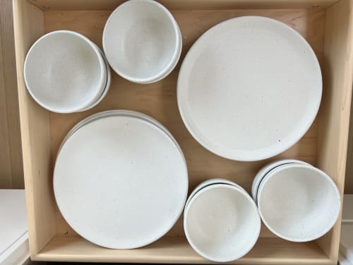 A matt white glaze with light black speckles. Perfect for that matcha tea or a late night bowl of ice cream.